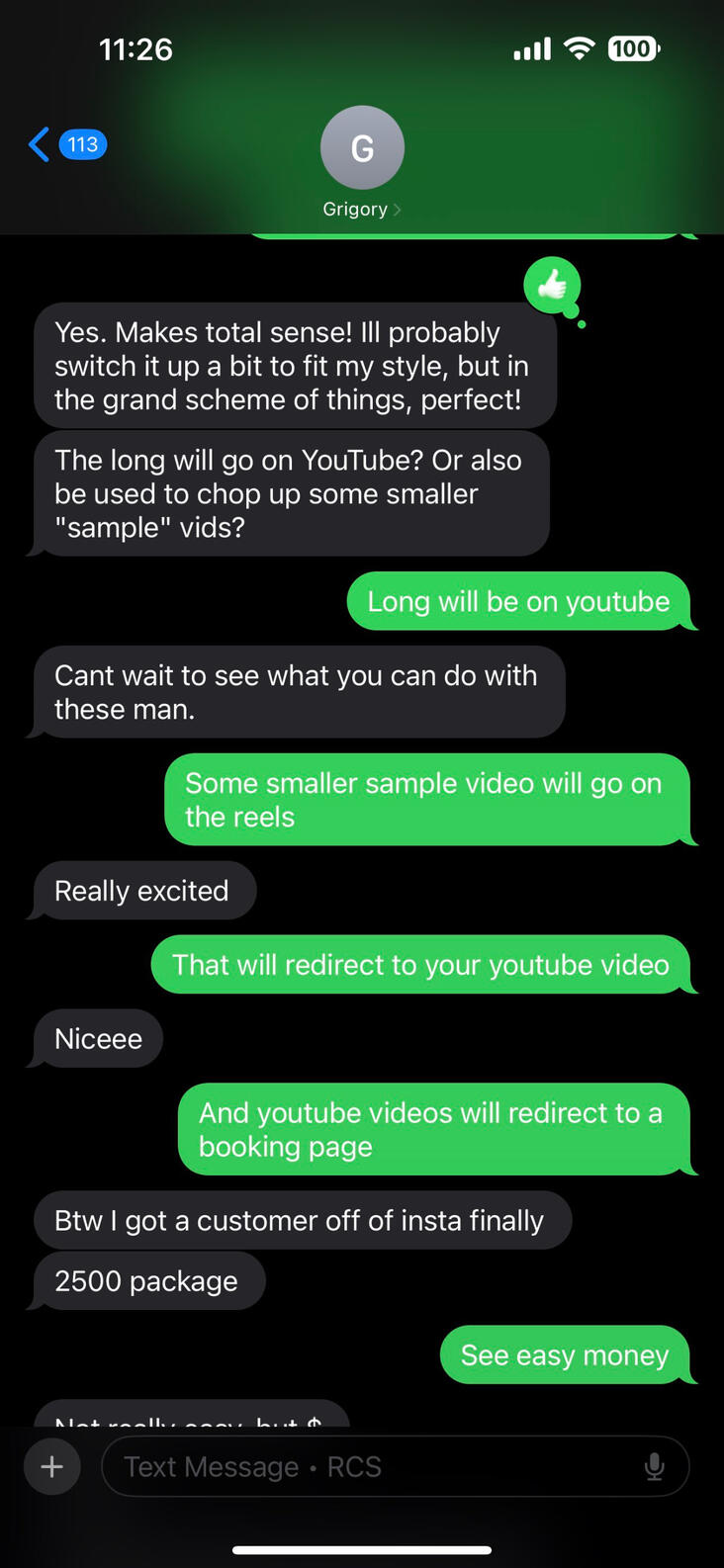 We come up with video ideas, script them, guide you through the entire recording process, and edit them. A couple of hours of recording per month creates a flywheel of video content that gets you clients.