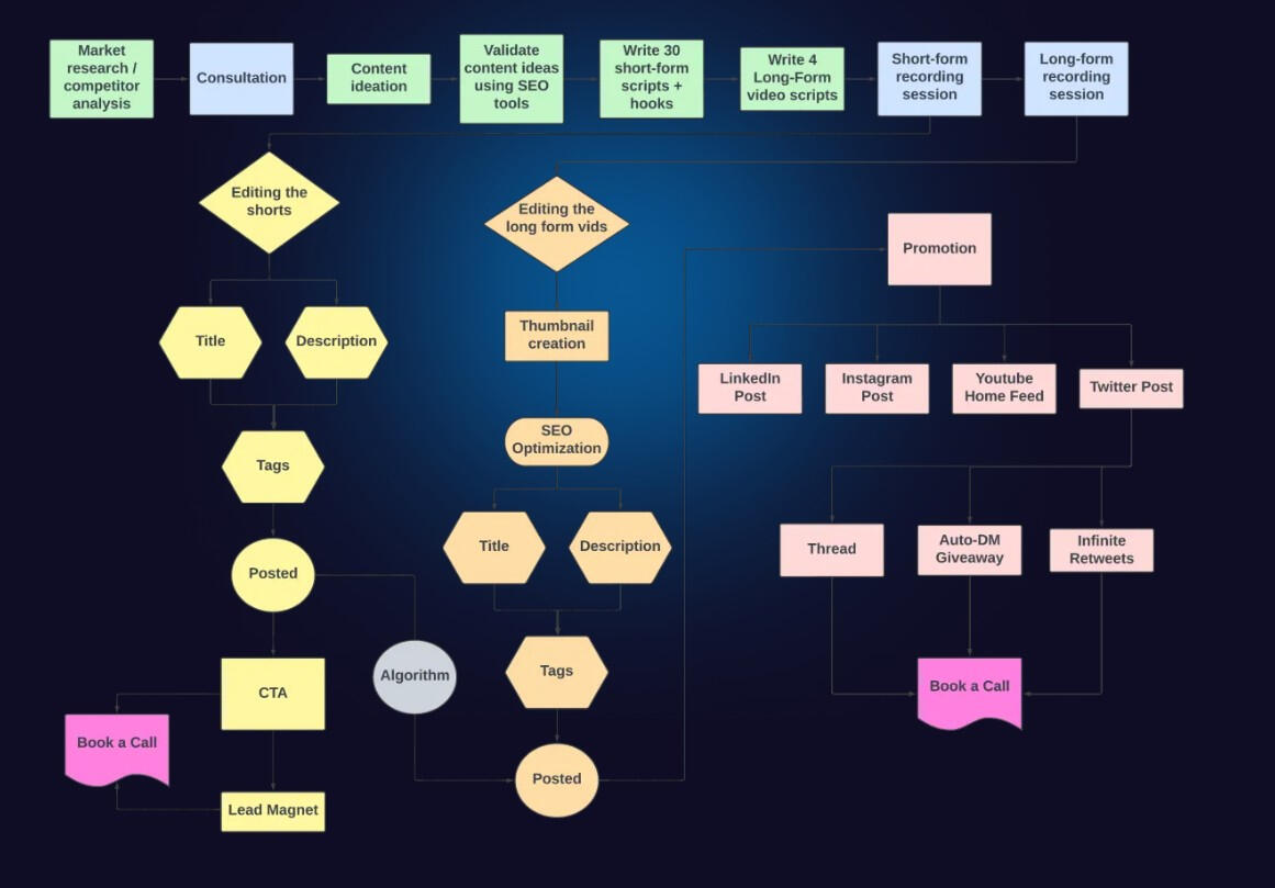 Our team will transform your recordings into beautiful youtube videos. Depending on your goals, we can make as many or as few videos as you like. You'll have enough content to post once or twice a week.